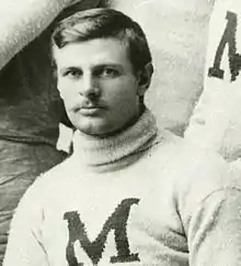 Michigan's lineup against M.A.A. was Ralph Waldo Emerson Hayes (right end), Willard W. Griffin (right tackle), Charles Thomas (right guard), Frank F. Harding (center rush), Virgil Tupper (left guard), Frank Henry Decke (left tackle), Woodruff [Paul Woodworth?] (left end), Edmond L. Sanderson and McAllister (quarterback), Lawrence Grosh (left halfback), Jewett (right halfback), and Dygert (fullback).[8][9]