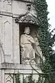 Four figures representing Europe, Asia, Africa & the Americas | Former Bristol Docks Authority Offices, Queens Square House, 19–21 Queen Square | 1885-6 | Unknown | Four statues | Portland stone | Each 3m high | Architect William Venn Gough.[2][32][7] | ||