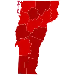 | Lamoille | 2,061 | 80.79% | 440 | 17.25% | 23 | 0.90% | 27 | 1.06% | 1,621 | 63.54% | 2,551 |