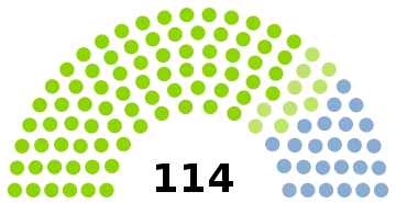 All 114 seats in the Storting 57 seats needed for a majority | |||||||||||||||||||||||||||||||||