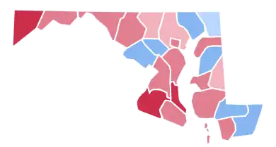 In this election, Maryland voted 0.85% more Democratic than the nation at-large.[2]