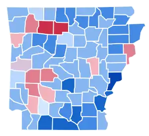 | Arkansas | 753 | 58.06% | 470 | 36.24% | 25 | 1.93% | 32 | 2.47% | 17 | 1.31% | 283 | 21.82% | 1,297 |