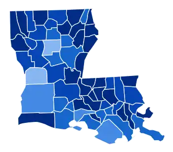 | Plaquemines | 416 | 74.55% | 127 | 22.76% | 15 | 2.69% | 0 | 0.00% | 289 | 51.79% | 558 |