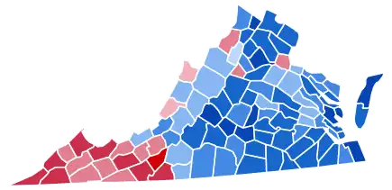 | Wythe County | 950 | 38.98% | 1,487 | 61.02% | 0 | 0.00% | 0 | 0.00% | -537 | -22.04% | 2,437 |