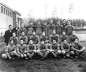 The 1908 Washington football team was an American football team that represented the University of Washington during the 1908 college football season. In its first season under coach Gil Dobie, the team compiled a 6–0–1 record and outscored its opponents by a combined total of 128 to 15.[1] Fred Tegtmeier was the team captain.