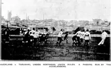 A meeting of players was held on Monday 12 July where it was decided to call for another meeting the following Monday and to invite all interested parties to attend. The ultimate aim was to form a league. It was also stated that "three clubs will be formed, two in the city and one at the North Shore".[1] The meeting was duly held on 19 July at the Chamber of Commerce on Swanson Street. Mr. A.E. Glover, M.P., occupied the chair, and there was a large attendance of around 150 supporters and players. They were to affiliate with the Northern Union and hold a practice match on the following Saturday. "Mr. R. Eagleton offered the league the use of three suitable playing grounds in Epsom". The ground was located near Potters Paddock which was later converted into Alexandra Racecourse.[2] Elections for officers were also held with 14 appointments made.[3]