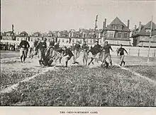 On November 12, the Washington & Jefferson Red and Black tried to defeat the so far undefeated, untied, and unscored upon Pitt eleven at Forbes Field. Twelve thousand raucous fans endured a game-long snowfall to cheer on their team. The Post-Gazette noted "It was a cheering duel throughout. The Pitt men were in the east bleachers with a band and they gave their cheers and yells, while in the western part of the field the W. & J. men held out. They cheered everybody connected with W. & J. During the intermission the Pitt students paraded around the gridiron, making a big "P" in the center of the field."[8]