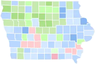 | Wapello | 3,102 | 36.62% | 2,755 | 32.53% | 1,838 | 21.70% | 699 | 8.25% | 76 | 0.90% | 347[lower-alpha 2] | 4.10% | 8,470 |