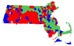 | Nantucket | 247 | 43.79% | 123 | 21.81% | 194 | 34.40% | 0 | 0.00% | 0 | 0.00% | 0 | 0.00% | 564 |