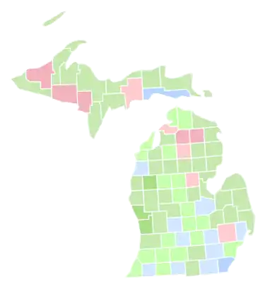 As of the 2020 presidential election, this is the last election in which Ottawa County, Sanilac County, and Missaukee County did not support the Republican candidate.[16][17] This was the first time since 1852 that Michigan voted for a non-Republican presidential candidate, and the only time Michigan ever voted for a third-party presidential candidate.