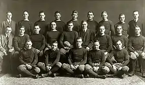 Training camp began in mid-September. Having abandoned his earlier practice of holding training camp at Whitmore Lake, Yost conducted training camp out of a new club house at Ferry Field.[12] Yost subjected his players to more strenuous drills each day, supplementing the drills "with work at the 'bucking machine' and the tackling dummy."[13]