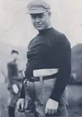 The experience in the line contrasted with inexperience in the backfield. The Wolverines were starting from scratch with the loss of all four backfield starters from the 1912 team.[5] Jimmy Craig had been the star halfback for Michigan in 1911 and 1912 and was also the 1912 intercollegiate hurdles champion.[6][7][8] (His older brother, Ralph Craig, was a track star at the University of Michigan who won gold medals in the 100 and 200-meter events at the 1912 Olympics in Stockholm, Sweden.[7]) In August 1913, Craig announced that he would no longer play football. Craig said he needed to drop athletics or fall behind in his university courses.[9] Another reason given for the decision was a bad knee.[1] Others speculated that Craig decided not to play, because he was not selected as captain of the 1913 team.[10]