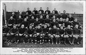 On January 14 the University of Pittsburgh Athletic Council adopted the one year residency rule for the sports of football, basketball, baseball and track beginning in the fall of 1916.[18] On June 15 the University hired Andrew Kerr as freshman football coach. "It was appreciated that in order to keep up the strength of the varsity, a man who could develop material in the freshman squad was absolutely necessary. Kerr is a famous teacher of football and should add strength to the Pitt football organization. With the freshman football coaching problem solved, and a man of the caliber of Kerr secured, Pitt athletic enthusiasts are content these days that the one year rule will not hamper their progress in getting to the front rank in football."[19]