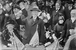![]() U.S. President Woodrow Wilson throws out the ceremonial first pitch, first for a president in a World Series. | ||||||||||