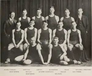 The 1916–17 season was the second Big Ten Conference championship for the Illinois Fighting Illini men's basketball team. Coached by Ralph Jones, the Illini continued their winning ways by finishing the season with an overall record of 13 wins and 3 losses and a 10 win 2 loss conference mark. The starting lineup included E. G. McKay, J. B. Felmley and Ralf Woods rotating at the forward position, captain and center C. G. Alwood, and guards George Halas and Ray Woods.[2] Woods was named the Helms Foundation College Basketball Player of the Year for his work during this season.[3]