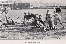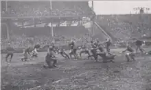 The 1920 Pittsburgh Panthers football team was an American football team that represented the University of Pittsburgh as an independent during the 1920 college football season. In its sixth season under head coach Pop Warner, the team compiled a 6–0–2 record and outscored all opponents by a total of 146 to 44.[1][2] The team played its home games at Forbes Field in Pittsburgh. “Perhaps due to the resurrection of sports after the war period, Pitt enjoyed an athletic year that was quite indicative of its pre-war strength, which so practically dominated college sport activities in this section for many years. The season of 1920-21 boasted of representative Pitt teams in every branch of sport - football, basketball, baseball, track, swimming and tennis. Aviation, which made its initial bow at the University last year, progressed in fine manner – the team having been entered in the big intercollegiate meet.″[3]