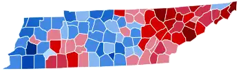 For over a century after the Civil War, Tennessee was divided according to political loyalties established in that war. Unionist regions covering almost all of East Tennessee, Kentucky Pennyroyal-allied Macon County, and the five West Tennessee Highland Rim counties of Carroll, Henderson, McNairy, Hardin and Wayne[1] voted Republican – generally by landslide margins – as they saw the Democratic Party as the “war party” who had forced them into a war they did not wish to fight.[2] Contrariwise, the rest of Middle and West Tennessee who had supported and driven the state’s secession was equally fiercely Democratic as it associated the Republicans with Reconstruction.[3] After the disfranchisement of the state’s African-American population by a poll tax was largely complete in the 1890s,[4] the Democratic Party was certain of winning statewide elections if united,[5] although unlike the Deep South Republicans would almost always gain thirty to forty percent of the statewide vote from mountain and Highland Rim support. When the Democratic Party was bitterly divided, the Republicans did win the governorship in 1910 and 1912, but did not gain at other levels.