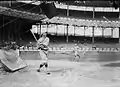 In 1921, Veach was the subject of an unusual motivational tactic by new player-manager Ty Cobb. Cobb believed that Veach, who came to bat with a smile and engaged in friendly conversation with umpires and opposing pitchers, was too easygoing. Detroit Tigers historian, Fred Lieb, described Veach as a "happy-go-lucky guy, not too brilliant above the ears", who "was as friendly as a Newfoundland pup with opponents as well as teammates."[5] Hoping to light a fire in Veach, Cobb persuaded Harry Heilmann, who followed Veach in the batting order, to taunt Veach from the on-deck circle. "I want you to make him mad. Real mad. . . . [W]hile you're waiting, call him a yellow belly, a quitter and a dog. … Take that smile off his face." The tactic may have worked, as Veach had career-highs in RBIs (126) and home runs (16), and his batting average jumped from .308 to .338. Cobb had promised to tell Veach about the scheme when the season was over, but he never did. When Heilmann tried to explain, Veach reportedly snarled, "Don't come sucking around me with that phony line." Veach never forgave Heilmann.[6]