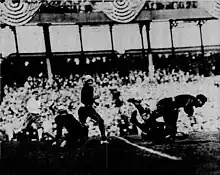 Three of the Four Horsemen, Stuhldreher, Crowley, and Layden, were consensus first-team picks on the 1924 All-America college football team.[4] Other notable players included tackle Joe Bach and center Adam Walsh. The Four Horsemen, Walsh, and coach Rockne were all later inducted into the College Football Hall of Fame.[5][6][7][8][9][10]