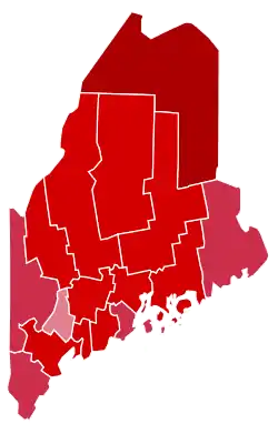 | Aroostook | 9,554 | 81.61% | 1,510 | 12.90% | 626 | 5.35% | 17 | 0.15% | 8,044 | 68.71% | 11,707 |