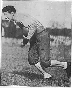 The starting lineup was Winslett (left end), Camp (left tackle), Jones (left guard), Holmes (center), Buckler (right guard), Perry (right tackle), T. Brown (right end), Hubert (quarterback), M. Brown (left halfback), Barnes (right halfback), Gillis (fullback).[41]