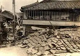 According to the Japanese government's official report, there were 428 fatalities, 1,016 injuries, 7,863 buildings destroyed, and 45,659 houses damaged by collapse or fire.[10] This quake caused extensive damage to the town of Toyooka and the Maruyama River area.