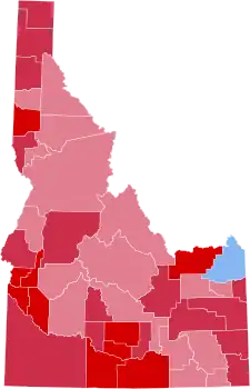 | Kootenai | 4,973 | 69.90% | 2,020 | 28.39% | 121 | 1.70% | 2,953 | 41.51% | 7,114 |
