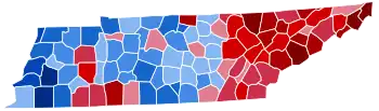 For over a century after the Civil War, Tennessee was divided according to political loyalties established in that war. Unionist regions covering almost all of East Tennessee, Kentucky Pennyroyal-allied Macon County, and the five West Tennessee Highland Rim counties of Carroll, Henderson, McNairy, Hardin and Wayne[1] voted Republican – generally by landslide margins – as they saw the Democratic Party as the "war party" who had forced them into a war they did not wish to fight.[2] Contrariwise, the rest of Middle and West Tennessee who had supported and driven the state's secession was equally fiercely Democratic as it associated the Republicans with Reconstruction.[3] After the disfranchisement of the state's African-American population by a poll tax was largely complete in the 1890s,[4] the Democratic Party was certain of winning statewide elections if united,[5] although unlike the Deep South Republicans would almost always gain thirty to forty percent of the statewide vote from mountain and Highland Rim support. When the Democratic Party was bitterly divided, the Republicans did win the governorship in 1910 and 1912, but did not gain at other levels.
