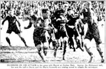 - Richmond Rovers Football Club held at the Gaiety Hall, Surrey Crescent on Thursday 14 March.[69] Richmond was granted £10 by the Auckland Rugby League towards their trip to Hikurangi to play there. Richmond lost the services of T. Hanlon who signed to play for Broughton Rangers Club in England. He was set to leave on the Ruahine Ship on 21 August. Near the end of the season the league gave Prentice, a Richmond player for several seasons a sum of money to recognise his efforts over the years. He had suffered “a good deal of adversity”, including a broken nose… and has been put to a good deal of medical expense, but has never at any time made a claim upon the insurance fund provided by the League”.[82]