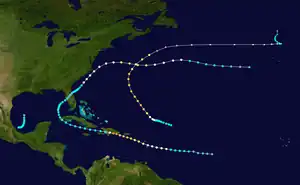 Due to the lack of systems that developed, only one tropical cyclone, the second hurricane, managed to make landfall during the season.[2] It severely impacted areas of the Greater Antilles, particularly the Dominican Republic, where an estimated 2,000 to 8,000 people died, before making subsequent landfalls on Cuba and the U.S. states of Florida and North Carolina, with less severe effects.