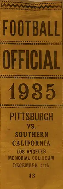 - "Play-By-Play Story of Pitt's 12–7 Victory Over Trojans". The Los Angeles Times. Los Angeles, California. December 15, 1935. p. Part I-23. Retrieved April 28, 2022 – via Newspapers.com.