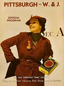 The Pitt News reported: "Dr. John B. Sutherland, head football coach, Don Saunders, director of alumni publications, and a male quartet composed of University men, are on the air every Tuesday night in a 15-minute broadcast over radio station WCAE. Football. music and gridiron philosophy, as presented by Coach 'Jock' in informal interview chats with Saunders, will be presented in a 12-week series. Each week a flashback of heroic football play will be enacted. The series, sponsored by a food corporation, has already been acclaimed by Pittsburgh radio editors."[21]