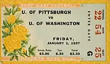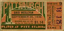 The 1936 Pittsburgh Panthers football team represented the University of Pittsburgh in the 1936 college football season. In its 13th season under head coach Jock Sutherland, the team compiled a 8–1–1 record, shut out five of its ten opponents, and outscored all opponents by a total of 214 to 34.[1] The team played its home games at Pitt Stadium in Pittsburgh. The Panthers won the Rose Bowl and were selected national champion by the contemporary Boand math system and retroactively years later by the Football Researchers poll and Houlgate math system.[2][3][4][5]
