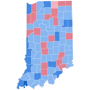 Indiana was won by incumbent President Franklin D. Roosevelt (D–New York), running with Vice President John Nance Garner of Texas, with 56.63% of the popular vote, against Governor Alf Landon (R–Kansas), running with businessman Frank Knox of Illinois, with 41.89% of the popular vote.[3][4] As of the 2020 presidential election, this is the last election in which Boone County, Rush County, Union County and Wayne County voted for a Democratic presidential candidate.[5] Indiana has only voted for the Democratic candidate twice since this election, in 1964 and in 2008. This marks the only time since 1856 that Indiana has voted Democratic in consecutive presidential elections.