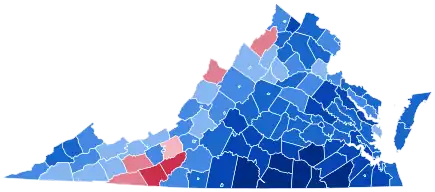 | Lynchburg City | 3,697 | 72.60% | 1,373 | 26.96% | 22 | 0.43% | 2,324 | 45.64% | 5,092 |