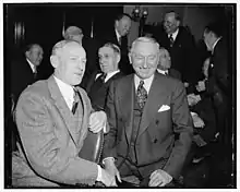 Senator Millard Tydings, a member of the conservative Southern wing of the Democratic Party, was opposed to President Franklin Delano Roosevelt's New Deal from the beginning and voted against most of its provisions.[1][2] Though Tydings began reconciliation with the administration over growing international concerns, Roosevelt's top priority in the 1938 midterms remained economic recovery and the Second New Deal.[3] He privately told Interior Secretary Harold L. Ickes to "take Tydings' hide off and rub salt in it."[2] Aware of Roosevelt's opposition and popularity, Tydings publicly insisted he supported the "bone and sinew" of the New Deal and that claims of his opposition were "silly propaganda."[2]