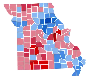 | Laclede | 3,323 | 40.14% | 4,941 | 59.69% | 5 | 0.06% | 9 | 0.11% | 0 | 0.00% | -1,618 | -19.55% | 8,278 |