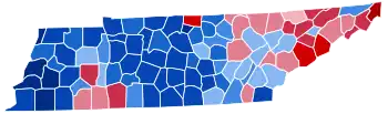 For over a century after the Civil War, Tennessee was divided according to political loyalties established in that war. Unionist regions covering almost all of East Tennessee, Kentucky Pennyroyal-allied Macon County, and the five West Tennessee Highland Rim counties of Carroll, Henderson, McNairy, Hardin and Wayne[3] voted Republican – generally by landslide margins – as they saw the Democratic Party as the "war party" who had forced them into a war they did not wish to fight.[4] Contrariwise, the rest of Middle and West Tennessee who had supported and driven the state's secession was equally fiercely Democratic as it associated the Republicans with Reconstruction.[5] After the disfranchisement of the state's African-American population by a poll tax was largely complete in the 1890s,[6] the Democratic Party was certain of winning statewide elections if united,[7] although unlike the Deep South Republicans would almost always gain thirty to forty percent of the statewide vote from mountain and Highland Rim support.