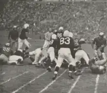 On November 6, Coach Paul Brown's Ohio State Buckeyes were Pitt's opponent. The Buckeyes arrived in Pittsburgh with a 1–5 record.[56] After the Carnegie Tech victory, Coach Shaughnessy was optimistic: "I'm not saying what the result of the game with Ohio State will be, but I think it will be a fine battle all the way."[57] Shaughnessy lost 6 straight games to Ohio State when he coached Chicago and the Panthers had not beaten a Western Conference team since the football program was de-emphasized (0–9). Louis Chelko was back in the lineup at left halfback, and Ralph Hammond was the designated Captain for the two touchdown underdog Panthers.[58]