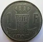 In 1944, shortly before the Liberation, the Allies minted 25 million 2 franc coins at the Philadelphia Mint, which were put in circulation after Belgium regained its independence.