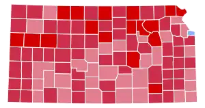 Kansas was won by Governor Thomas E. Dewey (R–New York), running with Governor John Bricker, with 60.25 percent of the popular vote, against incumbent President Franklin D. Roosevelt (D–New York), running with Senator Harry S. Truman, with 39.18 percent of the popular vote.[3][4] Dewey's margin was the largest against Roosevelt in any state in any of the four elections that he contested, despite carrying the state by comfortable margins in both 1932 and 1936.[5] The 104 counties (all except Wyandotte) that Roosevelt lost is the most he lost in any state during his four elections to the White House.