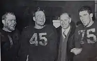 The 1946 Michigan football team compiled a record of 6–2–1 and closed the season with four consecutive wins over ranked opponents by a combined score of 162 to 19. In December 1946, lineman Bruce Hilkene was selected as the captain of the 1947 team. Hilkene had previously been selected as the captain of the 1945 team, but he was transferred as a Navy trainee and did not play for Michigan in 1945.[6] Coming off a strong finish, the 1947 team featured a number of veterans from the 1946 squad. The returning veterans included halfback Bob Chappuis who set a Big Ten Conference record for total offense in 1946 and finished second in the voting for the Chicago Tribune Trophy as the Most Valuable Player in the Big Ten.[7][8] Other returning starters included quarterback Howard Yerges, halfbacks Bump Elliott and Gene Derricotte, fullback Jack Weisenburger, ends Len Ford and Bob Mann, and linemen Hilkene, Bill Pritula, Quentin Sickels, Dominic Tomasi, and J. T. White. With a solid veteran core, the 1947 Wolverines were expected to be one of the best teams in the country.