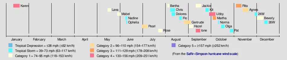 | Karen | Lana | Mabel | Nadine | Ophelia | Pearl | Rose | Annabell | Bertha |