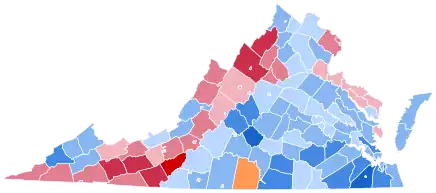 As of the 2020 presidential election, this is the last election in which the Fifth Congressional District has supported a Democratic presidential candidate. It is also the last election when Hanover County, King William County, Lancaster County, Middlesex County and Orange County have supported a Democratic Presidential nominee.[25] Chesterfield County and Lynchburg City would not vote Democratic again at a presidential level until 2020, Henrico County not until 2008, Albemarle County and Danville City not until 2004, Prince Edward County not until 1996 and Amelia County not until 1976.[25]
