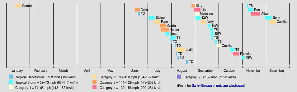 Camilla, the final significant storm of the 1949 typhoon season was the ninth tropical cyclone to intensify in the Yap-Palau area. Similar to other late season storms; Camilla moved west northwestward across the Philippines at an average speed of 12 knots. Here, Camilla departed from the climatological tracks curving northward across northern Luzon, weakening while crossing the mountainous area. Camilla then continued to move northeastward along the polar though, accelerating rapidly and becoming extratropical just east of Okinawa.[16]