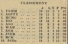 | 5 | AS Orléansville | 18 | 9 | 3 | 6 | 30 | 14 | +16 | 39 | |