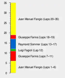 The 1950 Belgian Grand Prix, formally titled the Grand Prix Automobile de Belgique,[2] was a Formula One motor race held on 18 June 1950 at Spa-Francorchamps. It was race five of seven in the 1950 World Championship of Drivers. The 35-lap race was won by Alfa Romeo driver Juan Manuel Fangio after he started from second position. His teammate Luigi Fagioli finished second and Talbot-Lago driver Louis Rosier came in third.