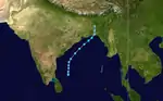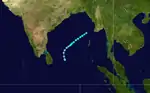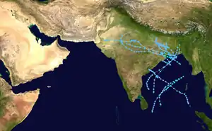 The 1950 North Indian Ocean cyclone season was part of the annual cycle of tropical cyclone formation. The season has no official bounds but cyclones tend to form between April and December. These dates conventionally delimit the period of each year when most tropical cyclones form in the northern Indian Ocean. There are two main seas in the North Indian Ocean—the Bay of Bengal to the east of the Indian subcontinent and the Arabian Sea to the west of India. The official Regional Specialized Meteorological Centre in this basin is the India Meteorological Department (IMD), while the Joint Typhoon Warning Center (JTWC) releases unofficial advisories. An average of five tropical cyclones form in the North Indian Ocean every season with peaks in May and November.[1] Cyclones occurring between the meridians 45°E and 100°E are included in the season by the IMD.[2]