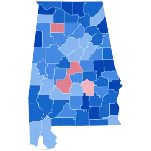 | Cullman | 5,254 | 60.62% | 3,391 | 39.13% | 22 | 0.25% | 1,863 | 21.49% | 8,667 |