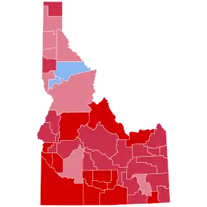 | Twin Falls | 14,471 | 76.07% | 4,548 | 23.91% | 4 | 0.02% | 9,923 | 52.16% | 19,023 |